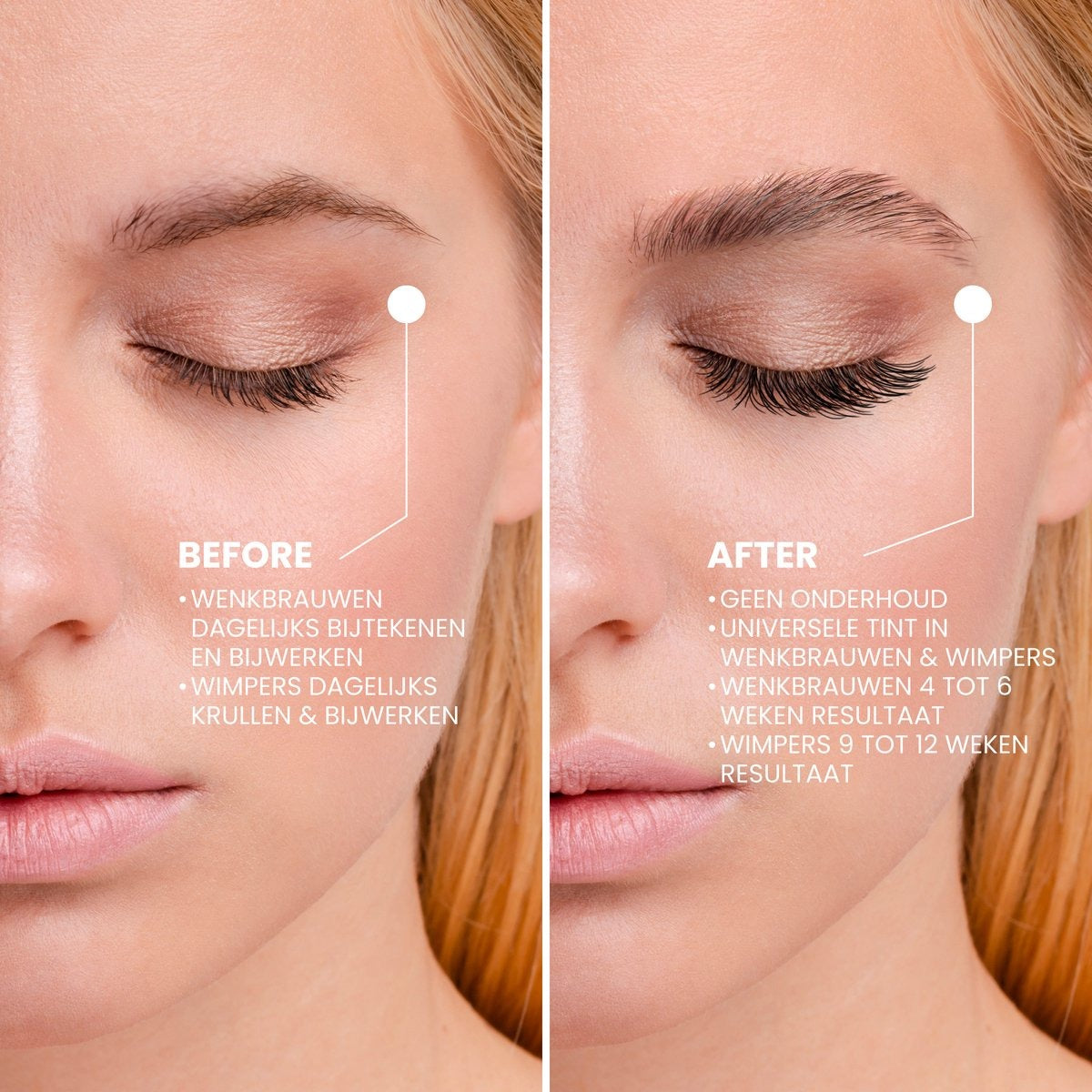 • Geen valse wimpers, wenkbrauw gel of oog make-up meer nodig!
