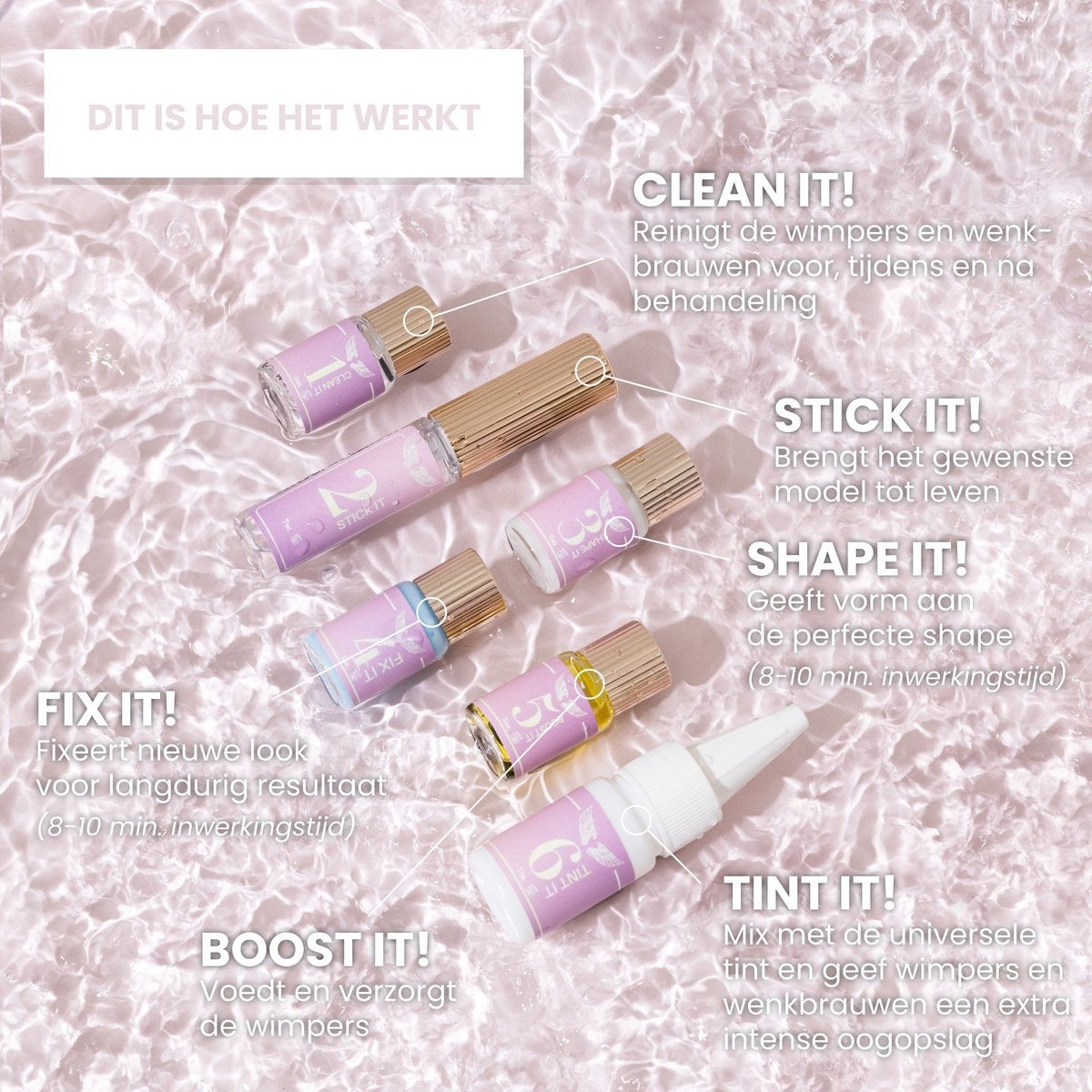 lk product in de kit is zorgvuldig samengesteld met een duidelijke uitleg, zodat jij precies weet wat je wanneer moet gebruiken. ✨