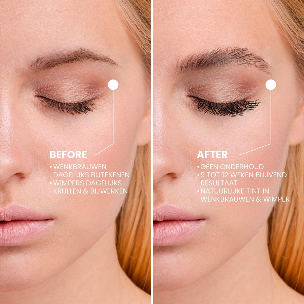 Zie het verschil na slechts één behandeling met The Lash Box vollere, gelifte wimpers zónder mascara.
